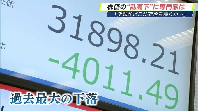 4400円以上の下げ幅で3万1458円。過去最大の下落となりました。ジェットコースター相場に街の人は…。