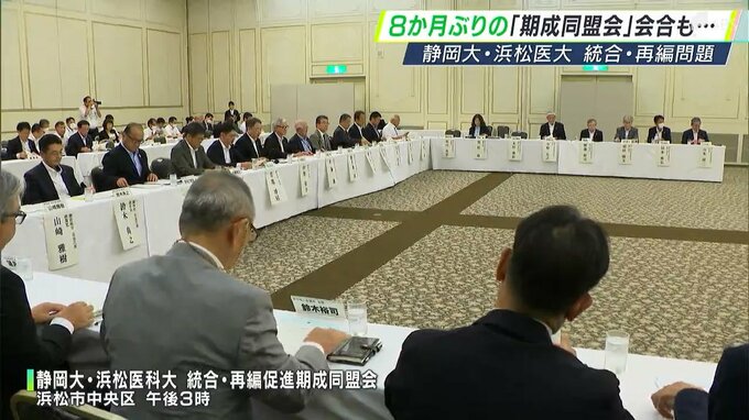 静岡大学と浜松医科大学の統合・再編をめぐり、再編の早期実現を目指す「期成同盟会」の会合が8月6日、8か月ぶりに開かれ、浜松医科大の今野学長は迅速な意思決定を求めました。