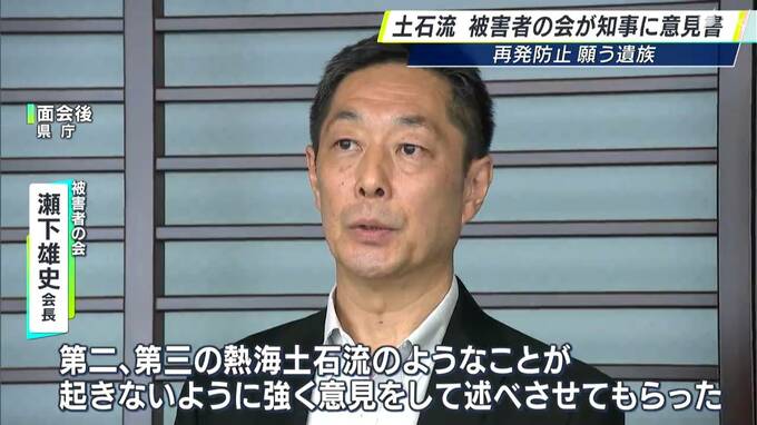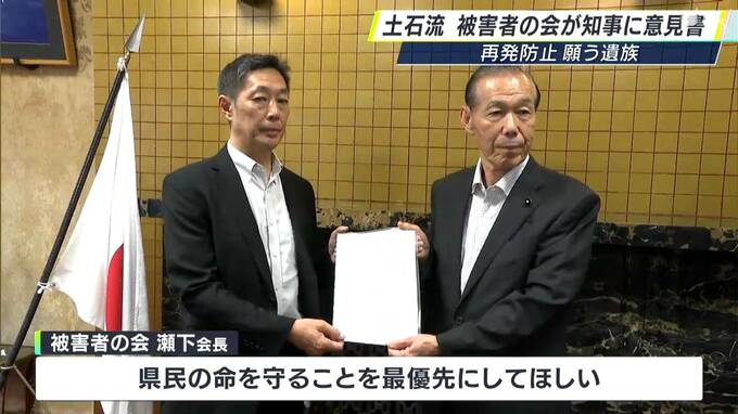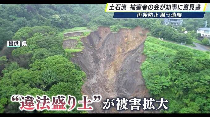 鈴木知事に8月7日、意見書を提出したのは熱海土石流災害の「被害者の会」です。静岡県の盛り土条例の廃止・改正の動きに対する要望です。28人が犠牲になった熱海土石流災害。2024年7月で発生から3年が経過しました。