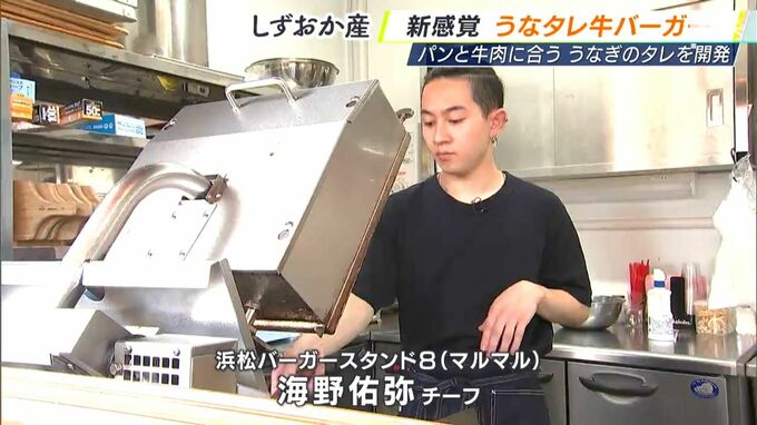 「ウナギは基本何回か漬けて焼いて漬けて焼いてってだしていくんですけど、パティにはそういうわけにはいかないので。焦げちゃったりしちゃうので、できるだけ1回だけつけてやるように。甘辛い感じになっています。肉にも合うウナギのタレってあるんだって思わせるようなタレになっています」