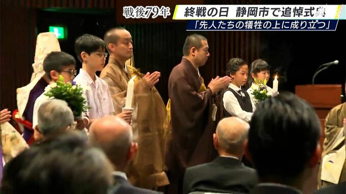 静岡市で開かれた式典では、戦没者のひ孫にあたる小中学生4人が祭壇に灯と花を供えました。