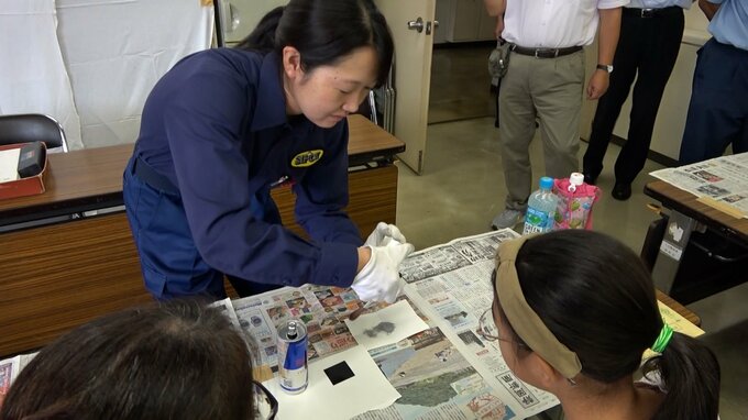 静岡県警下田警察署で8月20日、小学生が警察官の仕事を体験し、鑑識作業などに挑戦しました。