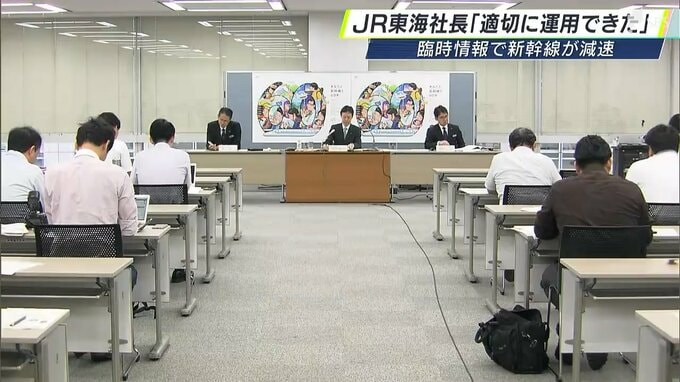 南海トラフ地震の臨時情報発表を受け、東海道新幹線は一部の区間で速度を落として運行しました。JR東海の丹羽俊介社長は「適切に運用できた」としたうえで、「必要があれば見直しを検討する」と述べました。