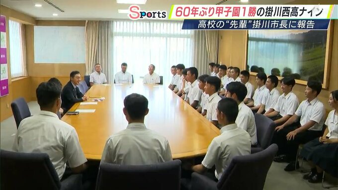 京都代表・京都国際高校が、劇的なタイブレークを制し初優勝で幕を閉じた、夏の甲子園から3日。試合とは打って変わって、高校生らしいさわやかな笑顔で静岡県の掛川市役所を訪れたのは、60年ぶりに夏の甲子園で1勝を挙げた静岡代表・掛川西高校の野球部だ。