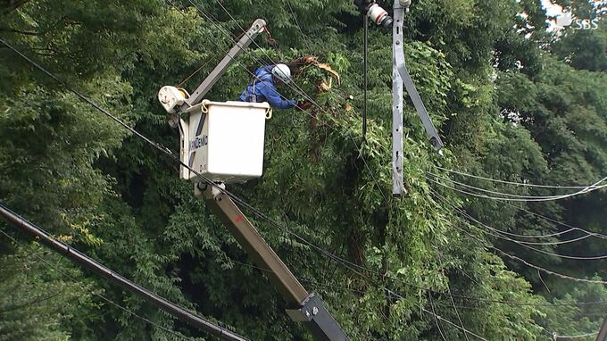 伊東市鎌田では倒木で電線が切れるなどしたため、付近の住宅約500戸が停電しました。