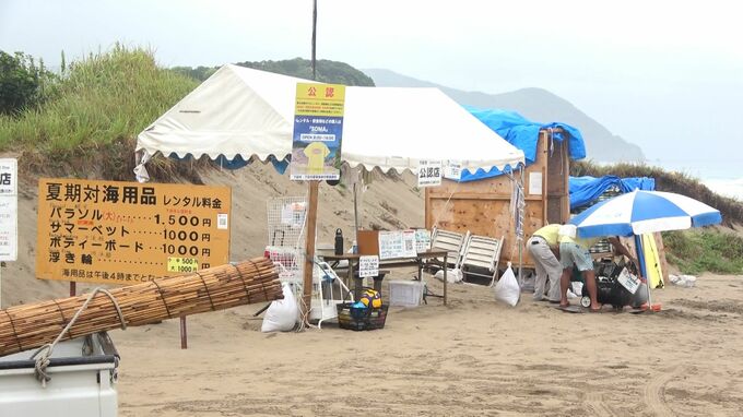 海水浴グッズのレンタル業者は店じまいに取り掛かり、周辺の店舗や駐車場は営業休止が目立ちました。