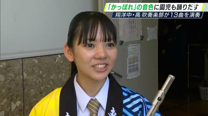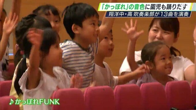 この演奏会は、東海大静岡翔洋中学・高校の吹奏楽部が子どもたちに音楽を楽しんでもらおうと初めて企画しました。招待した静岡市清水区内の幼稚園児500人を前に、13曲を披露しました。