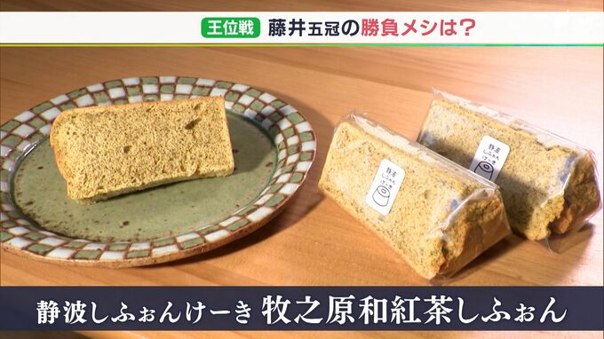 午前と午後の「おやつ」で両棋士ともに選んだ逸品が…。「静波しふぉんけーき」(牧之原市静波)の自信作「牧之原和紅茶しふぉん」です。