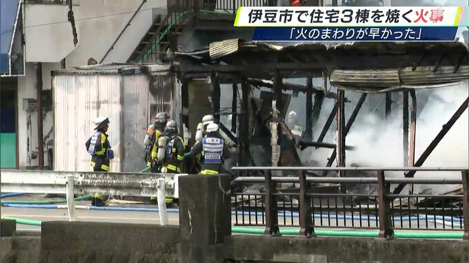 10月16日午前10時すぎ、伊豆市松ケ瀬で「家が燃えている」などと消防に通報が相次ぎました。警察によりますと、この火事で火元の木造2階建ての住宅が全焼したほか、隣接する2棟の住宅に延焼しこのうち1棟が全焼しました。