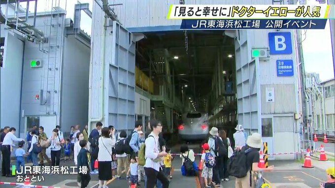 新幹線の整備を行うJR東海浜松工場が週末、一般向けに開放され、鉄道ファンや家族連れなど多くの人でにぎわいました。