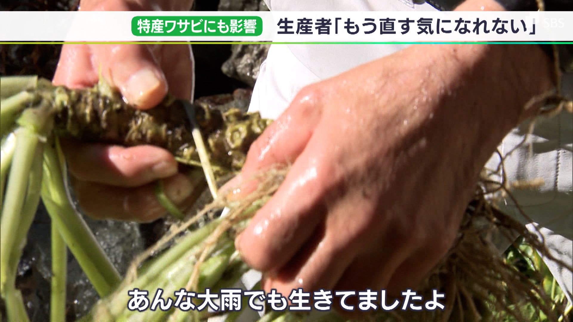 静岡市清水区の山あいに広がるワサビ田です。江戸時代から続くという歴史ある生産地ですが、今回の大雨で沢の水が濁流となって襲いました。石垣などが押し流されて壊滅的な状態に、生産者は肩を落とします。