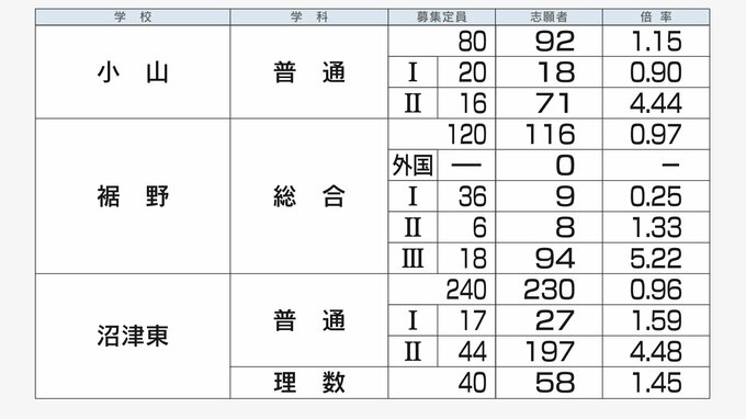 ◇御殿場、御殿場南、小山、裾野、沼津東
