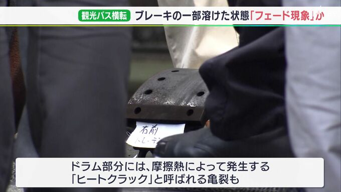 捜査関係者によりますと、バス本体を検証した結果、ブレーキシューとドラムに焼けた跡があり、一部は溶けていたことが分かりました。また、ドラムには、ブレーキシューとの摩擦熱によって発生するヒートクラックと呼ばれる亀裂があったことも確認されたということです。