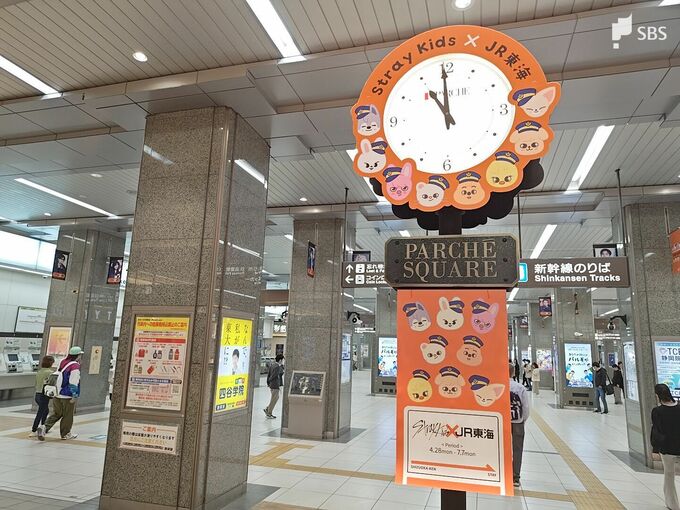 JR静岡駅には、Stray kidsのオフィシャルキャラクター「SKZOO」をあしらった時計や、メンバーの写真やフラッグ、駅名票を模した特別広告なども登場しました。静岡駅構内は、Stray kids一色に染まっています。