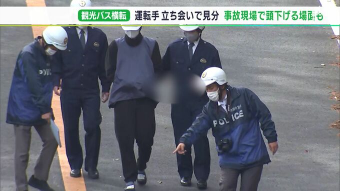 10月13日に静岡県小山町須走で観光バスが横転し27人が死傷した事故で、警察は10月27日、バスの運転手を立ち会わせて実況見分を行いました。運転手は、事故現場で深々と頭を下げました。