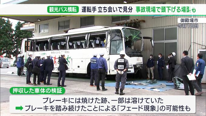 事故現場の400m以上手前から制御不能だったとみられる観光バス。警察は運転手と共に、出発地点の須走口5合目からバスが横転した現場まで移動しながら、どのあたりからブレーキが利かなくなったのかやギアを切り替えた地点などを1時間半にわたり確認しました。警察は路面に残ったタイヤ痕やバスが乗り上げたのり面の痕跡などと、運転手の供述を照らし合わせながら、過失について詳しく調べるとみられます。