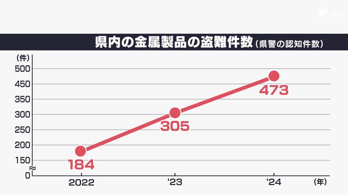 「令和6年中の金属盗は全国で約2万件発生しています。令和2年と比べて約4倍に増えています」