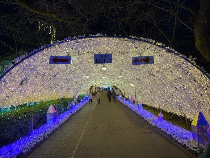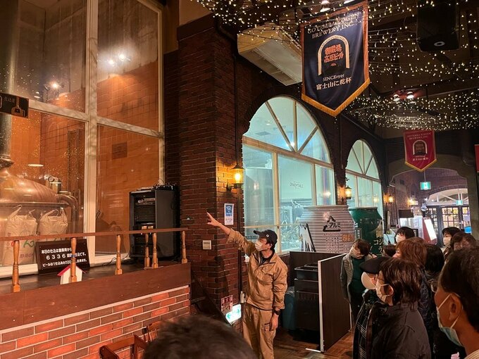 イルミネーションが始まった御殿場高原ビールでは、ビール醸造についての話を聞いた後、買い物タイムが設けられ、地域共通クーポンを使ってお土産を買う参加者もいました。