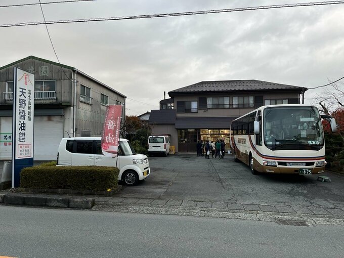 ファーマーズマーケットでは、花やミニトマトを納入している農家「セリザワ マルシェ」の代表者から御殿場でのオススメ野菜や肉、加工品を教えてもらいながらの買い物を楽しみ、続いて創業85年の醤油醸造元「天野醤油」(御殿場市)では、普段なら見ることのできない醤油のもろみの入った樽を見学します。