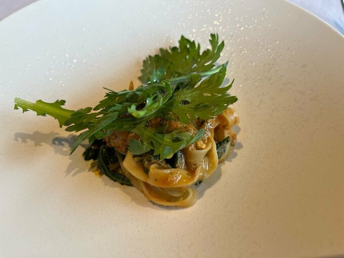 「天城シャモの団子のスープ」や御殿場名物の「馬肉のカルパッチョ」、「モクズガニを使ったパスタ」、「駿河湾の魚介と箱根西麓野菜の包み焼き」などなど、地元の食材を使った豪華料理に参加者も大満足の様子。