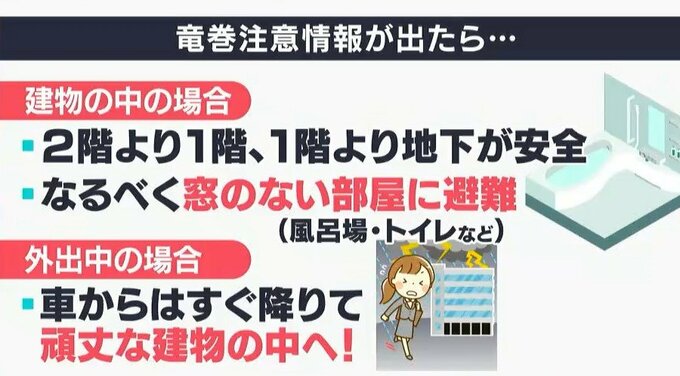 まさに竜巻注意情報という竜巻が発生しやすくなっていますよという気象情報がありますが、これが出たときにはどうしたらいいんでしょうか。