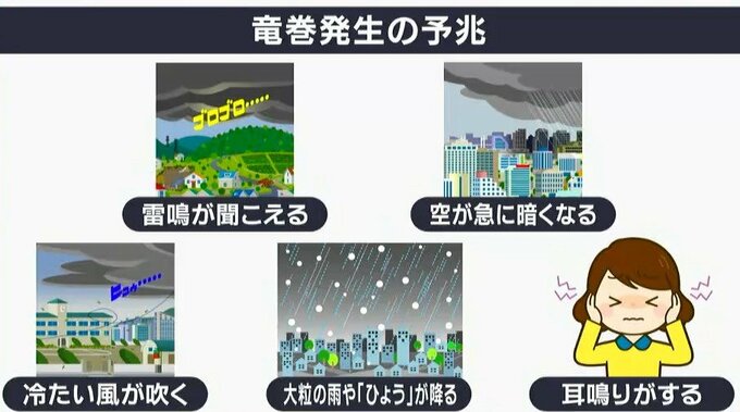 雷鳴が聞こえる、空が急に暗くなる、冷たい風が急に吹く、あるいは大粒の雨やひょうが降ってくるとか、あと急に耳鳴りがキーンとしたり、これは気圧の変化でそういうことが起こり得るんですが、これは竜巻発生の予兆と言えると思いますね。