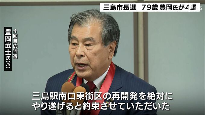 「身の引き締まる思い。全身全霊で取り組んでいく」79歳豊岡氏が4選 当選証書を手に決意新た 静岡・三島市長選 2022年12月19日(月) 12:49 国内 12月18日に投開票された静岡県三島市の市長選挙で、現職の豊岡武士氏(79)が4回目の当選を果たしました。一夜明けた19日、三島市役所で、豊岡氏に当選証書が手渡されました。現職と新人2人による三つ巴の戦いとなっ…