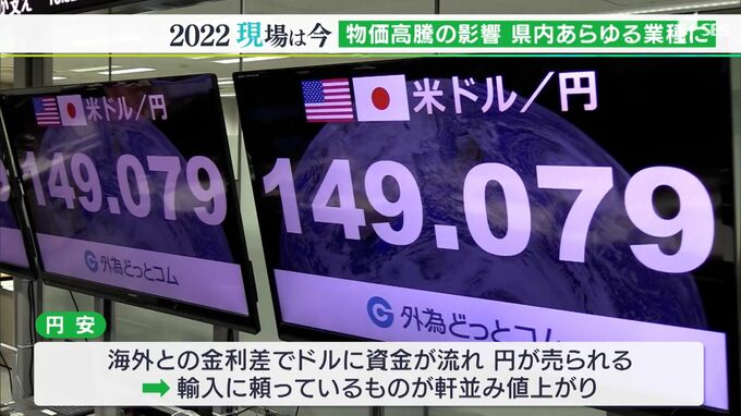 物価の高騰は客の財布の紐もかたくしています。物価高騰の大きな要因は「円安」です。海外との金利差でドルに資金が流れ、円が売られたためで、輸入に頼っているものが軒並み値上がりました。
