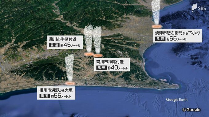 気象庁のデータによりますと、牧之原市のほかにも、掛川市で午後0時30分、菊川市で午後0時50分と午後1時、焼津市で午後1時など各地で竜巻が発生しました。