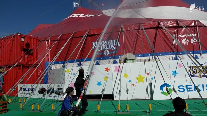 全国で公演を行う木下大サーカスでは自衛消防隊を組織していて、団員たちは各地で定期的に訓練を実施しています。