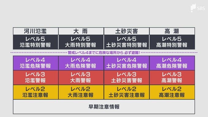 5段階の警戒レベルを導入 4つの分類で分かりやすく