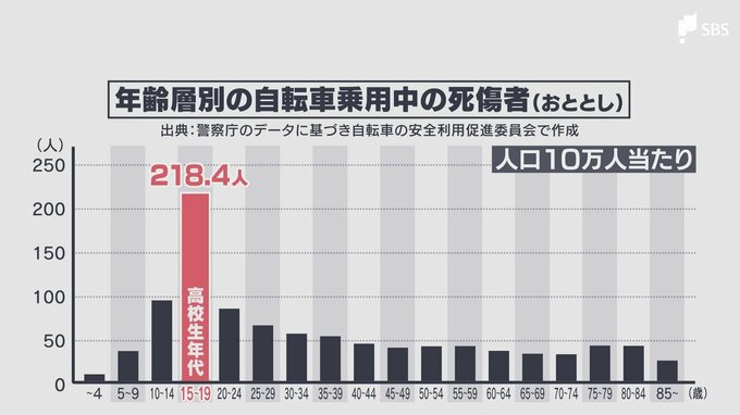 校則が変わった背景にあるのは、高校生の自転車事故率の高さです。