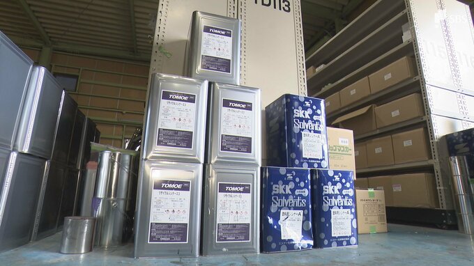 シンナーもナフサ由来の製品です。この店が使っているシンナーは4月に入り、最大で80%値上げされたといいます。さらに工事用の塗料もナフサが原料で、5月から30%ほど値上がりします。
