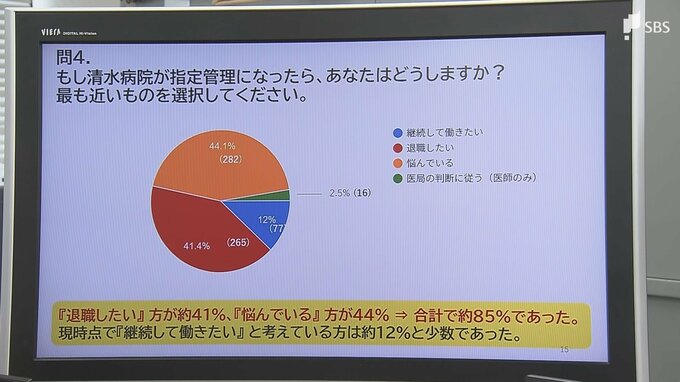労働組合が職員640人から回答を得たアンケート調査では、「退職したい」または「悩んでいる」と答えた職員がそれぞれ4割以上に上りました。