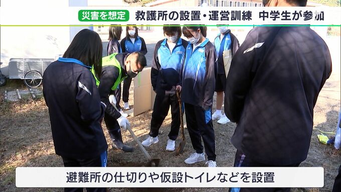 「災害時には年齢にかかわらず助けが必要」中学生が救護所運営訓練 避難所の仕切りや仮設トイレ設置も=静岡・下田市 2023年1月12日(木) 20:07 国内 静岡県下田市で1月12日、大規模な災害を想定した救護所の設置運営訓練が行われ、地元の中学生が参加しました。救護所の設置運営訓練は、下田市や賀茂医師会、消防などが行い、下田中学校の2年生約150人が参加しま…