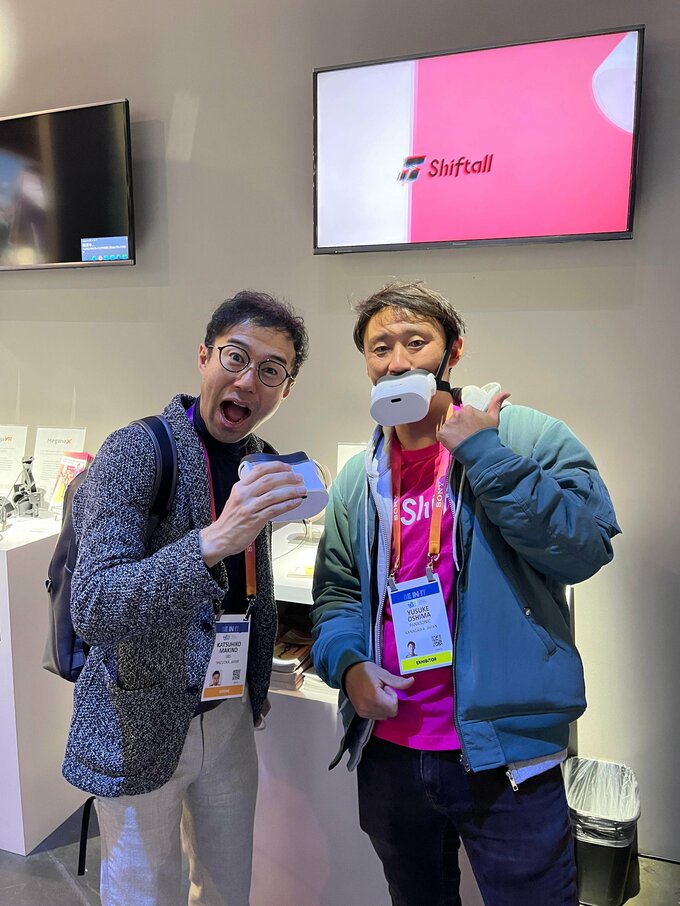 また、パナソニックホールディングスの子会社「Shiftall」(シフトール)のコーナーには、防毒マスクか、アヒルのくちばしか、とツッコミを入れたくなるひときわ奇妙なアイテムが…。