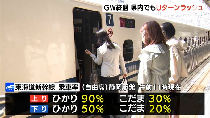 「正直もう少しいたかった」“制限なし”GWも終盤 静岡県内はUターンラッシュも交通機関に目立った混雑なし(静岡県) 2022年5月5日(木) 12:11 国内 3年ぶりに行動制限のないゴールデンウィークも終盤を迎え、5月5日がUターンラッシュのピークです。静岡県内の交通機関に目立った混雑はありませんが、新幹線の乗客数は2021年の同じ時期に比べて増えています。 3…
