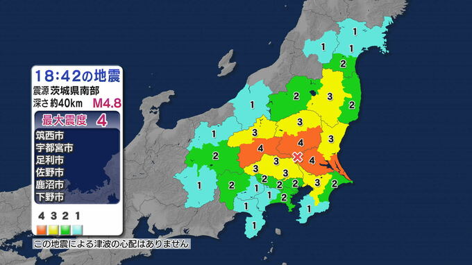 震度4 茨城県南部 栃木県南部 群馬県南部