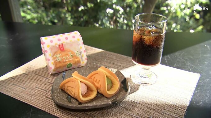 「茶っふる」はお茶問屋が運営する茶町KINZABURO(静岡市葵区)の人気スイーツ。静岡の特産品・本山抹茶と石垣イチゴを練りこんだクリームをフワフワのワッフル生地で包みました。