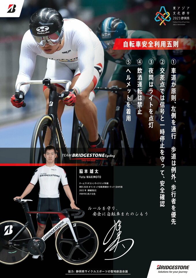 自転車の利用をめぐっては、2008年に「自転車は原則車道の左端を走行すること」と改め確認されて以降、自動車との共存を目指し、さまざまな取り組みが行われています。「県サイクルスポーツの聖地創造会議」は、高校生の自転車による事故減少を目指して、ブリヂストンと協業し「自転車安全利用五則」を記した啓発ポスターを県内の高校に配布を始めました。