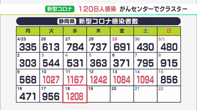 【新型コロナ】4日ぶりの1000人超え 新たに1208人が感染 がんセンターでクラスターも(静岡県) 2022年5月18日(水) 19:54 国内 5月18日、県内で新たに1208人が新型コロナウイルスに感染したことがわかりました。1日あたりの新規感染者が1000人を超えるのは4日ぶりとなります。 新たな感染者を自治体別にみますと、静岡市で282人、浜松市で25…