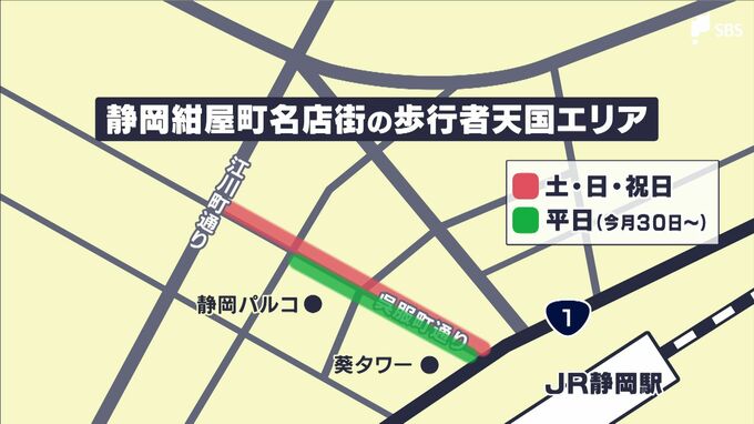 「“おまち”に人を呼ばないと始まらない」静岡紺屋町名店街が平日も歩行者天国に 6/30から 2023年6月1日(木) 19:49 国内 「おまち」のにぎわい創出に向けた新たな取り組みです。静岡市の商店街では、6月末から土日の歩行者天国を平日に拡大することになりました。人が中心の街づくりに期待を寄せています。<植田麻瑚記者>「平日でも…