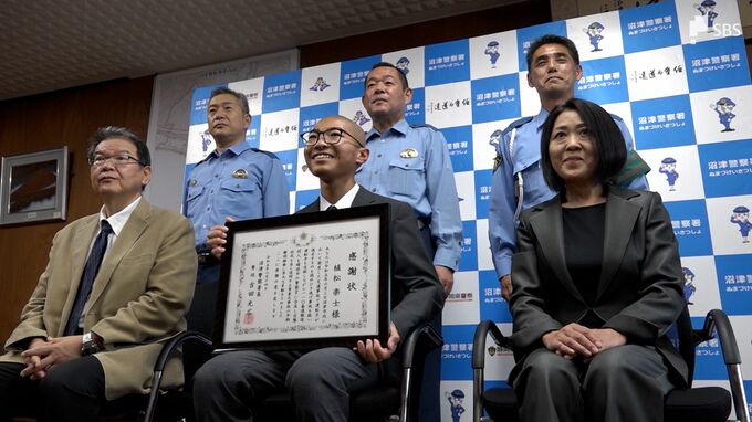 静岡県沼津市で起きたひき逃げ事件の現場から走り去った運転手を自転車で追跡し、容疑者の確保に貢献した男子高校生に警察から感謝状が贈られました。「自分がやらなきゃ逃げられる」。とっさの判断が事件解決につながりました。