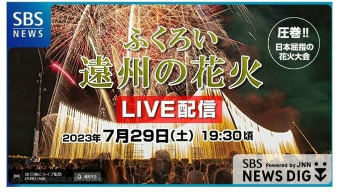 会場で花火を観ることができない方に朗報です。SBSは国有数の花火大会の様子を「SBS NEWS DIG」で余すことなくライブ配信します。現地に足を運べない人に向けて、遠州の夜空を焦がす光の共演をお届けします!
