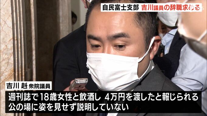 自民地元支部も怒り「非常識極まる」 18歳女性と飲酒疑惑の吉川氏に議員辞職求める上申書提出 2022年6月17日(金) 12:33 国内 吉川赳衆議院議員の18歳女性との飲酒疑惑を受けて、自民党静岡県連第5区の富士支部は、吉川議員の辞職を求める上申書を県連に提出しました。吉川衆議院議員は一部週刊誌で18歳女性と飲酒し、4万円の小遣いを手渡し…