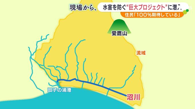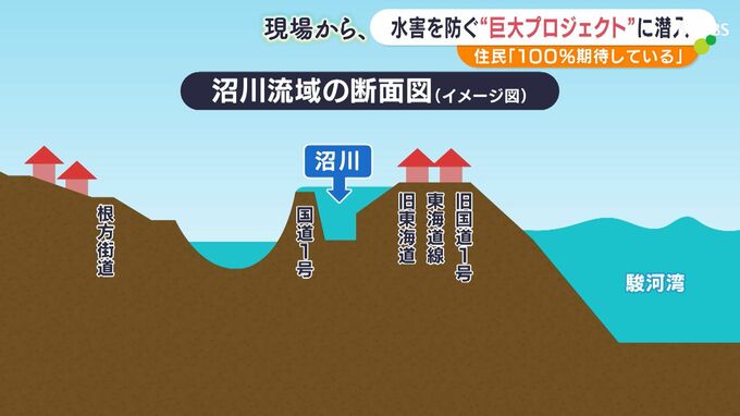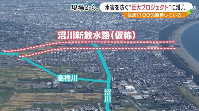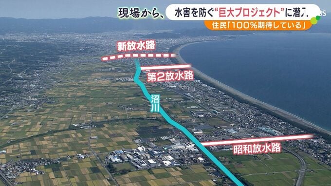 静岡県沼津市から富士市にかけて、大雨で浸水被害がたびたび起きている沼川。2023年6月の台風2号では、沼川近くで多くの家が浸水する被害がありました。川があふれないように水を駿河湾に流す3本目の放水路の完成を住民は心待ちにしています。