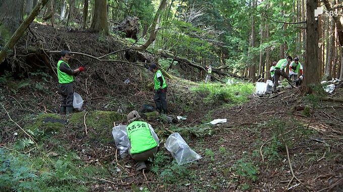 1泊2日の学習コースは、海ではなく、山でのごみ拾いから始まります。