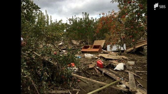 「濁流と壊れた家屋がここにあったリンゴの木を全部なぎ倒して。泥が40cmぐらい堆積していました。ここは」