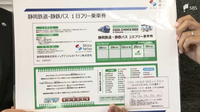 フリー乗車券の配布は、脱炭素社会の実現に向けた静鉄グループの取り組み「COOL CHOICE 2023 in しずおか」の一環で、CO2の排出量の少ない電車やバスを使うことで身近な環境貢献を考えてもらうことが狙いです。