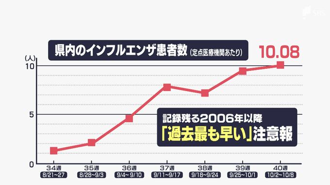 「体調管理とワクチン接種を」インフルエンザ流行拡大 “記録上最も早い”注意報レベルに=静岡県 2023年10月13日(金) 20:21 国内 インフルエンザの流行拡大を受け、静岡県は10月13日、記録が残る中では過去もっとも早く「注意報レベル」に達したと発表しました。県は10月8日までの1週間の定点医療機関あたりのインフルエンザの患者数が10.08と…